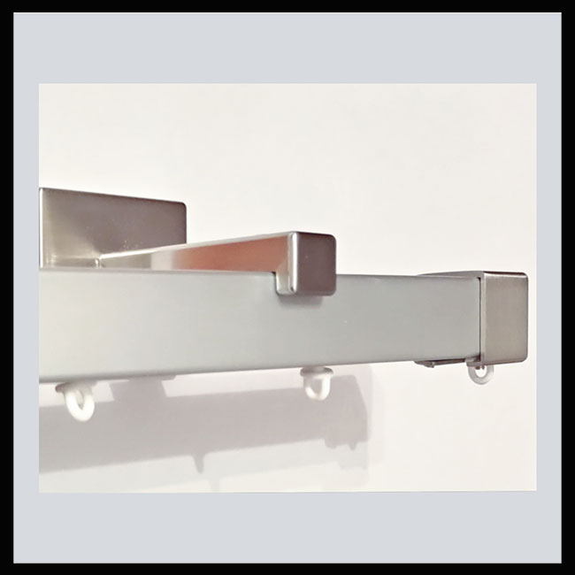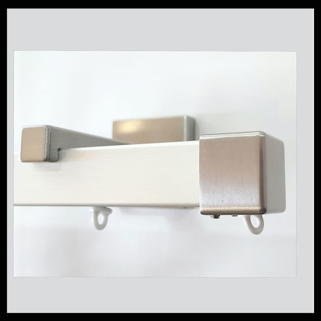 En las cortinas actuales las barras de cortina que predominan son las de color acero, acero mate, y como opción mas arriesgada en negro y blanco brillo.